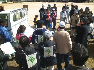訓練は、地元消防団の放水訓練から始まり、消火器の実践訓練、非常食の炊き出し、備蓄非常設備や用具の説明があり、備えられている内容を知る事ができました。