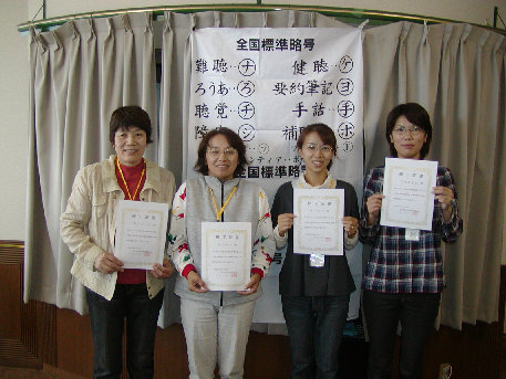 平成21年9月11日(金)から、小松島市で要約筆記者を養成する講座(基礎過程)が開催され、10月23日(金)、全過程を修了した4名の皆さんに、小松島市介護福祉課の芳賀さんより修了証書が手渡されました。