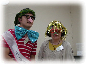 このゲームで第一位になった会員さんには、豪華なプレゼントがありました。別室に消えてしばらくして登場!(写真のかぶりも)